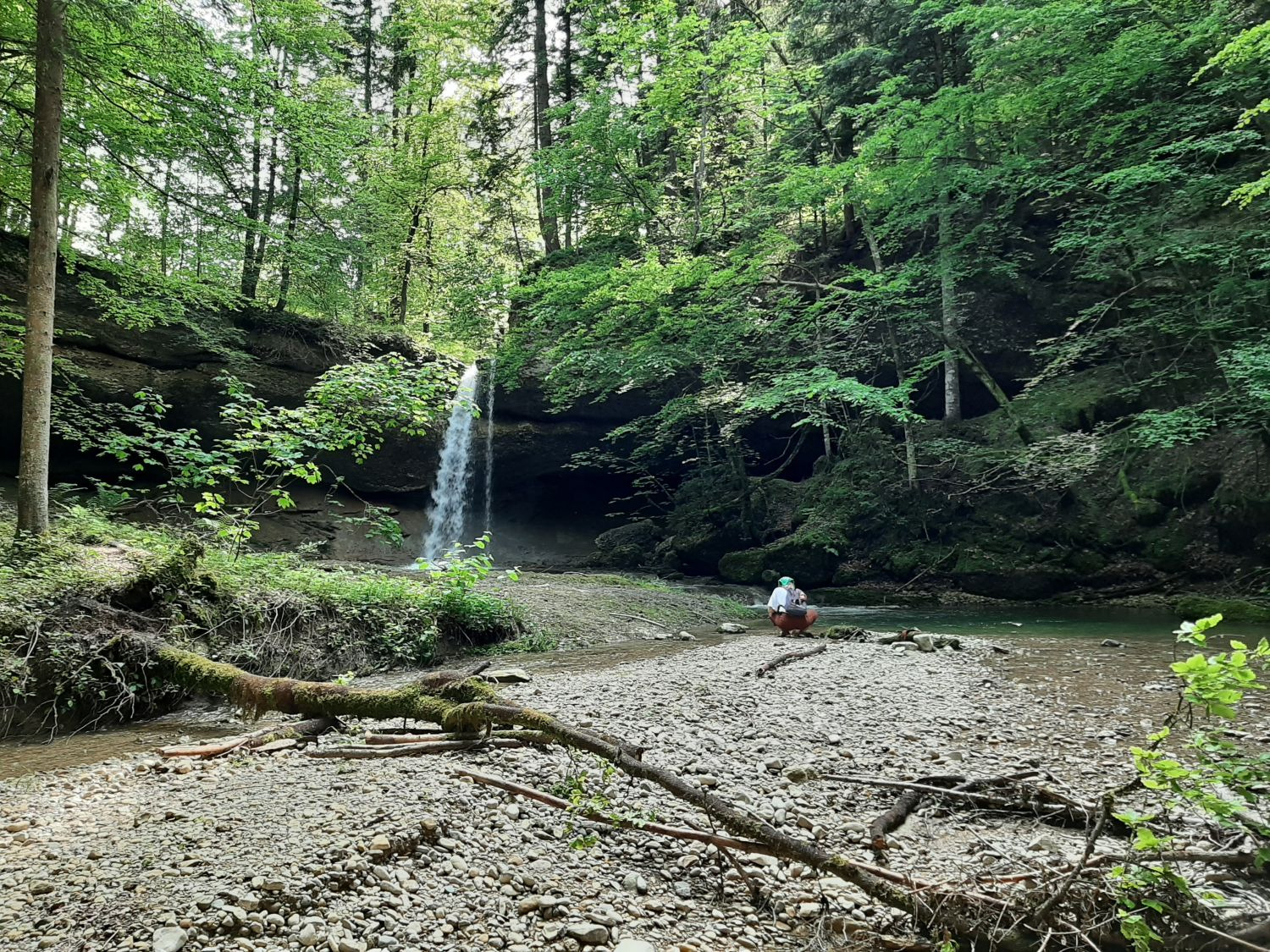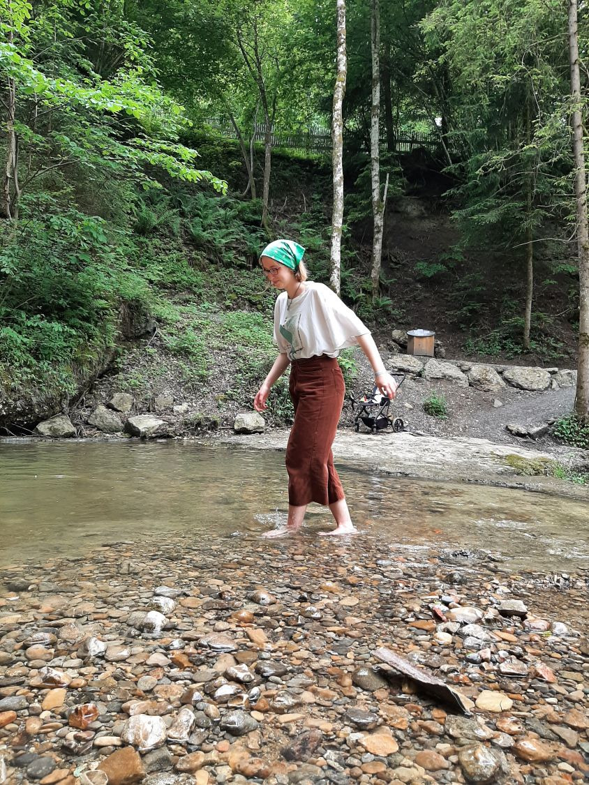 Danach zuckeln wir zu den Schneckecker Wasserfällen, wo uns, entwöhnt durch monatelange Corona-Bedingungen, die schiere Menge an Menschen erschlägt. Wir bestaunen die Wassermassen, waten barfuß durch den Bach, und Chéri, befeuert durch diese taktile Sensation, wiederholt ein ums andere Mal, dass wir dieses Jahr aber wirklich unsere schon ewig ausstehende Bachwanderung machen werden. Lotti überrascht mich mit ungewohnter Tiefenentspannung, Chéri damit, dass er auf dem Rückweg gerne die längere Strecke erwandern möchte. Diese führt durch den Wald, und als der Weg augenscheinlich endet und wir schon ans Umkehren denken, zieht ein älterer Waldschrat mit Hund an uns vorbei, versichert uns, dass es hier weitergehe, und lockt uns in die zwar unwegsame, jedoch wunderschöne Wildnis. Ich denke sofort, dass das ein wahnsinniger Serienmörder ist, der uns naive Touris zu seiner Hütte schleppt, dort mit Kettensägen zerlegt, abnagt und unsere Knochen zu den anderen Skeletten wirft. Völlig unerwartet führt uns der vermeintliche Killer indessen zu einem weiteren, verborgen liegenden Wasserfall, erläutert uns den Weg zurück ins Dorf und verschwindet samt Hund im Gestrüpp. Als ich anschließend Chéri und Lotti von meinem finsteren Film erzähle, platzt es aus Lotti heraus: „Jaaa!!! Ich dachte, Ihr seid total irre, dass Ihr einfach mit dem mitlauft, Ihr kennt den doch gar nicht! Ich hatte die ganze Zeit Steine in der Hand, um ihn notfalls abzuwerfen!“ Chéri lacht sich schlapp über unsere blühende Fantasie und erklärt uns, dass das lediglich ein pensionierter Gymnasiallehrer aus Blindenberg gewesen wäre. In Lottis und meinen Augen beweist das gleichwohl gar nichts, im Gegenteil, der Mann hat höchstwahrscheinlich sehr viele sehr schlimme Jahre hinter sich.