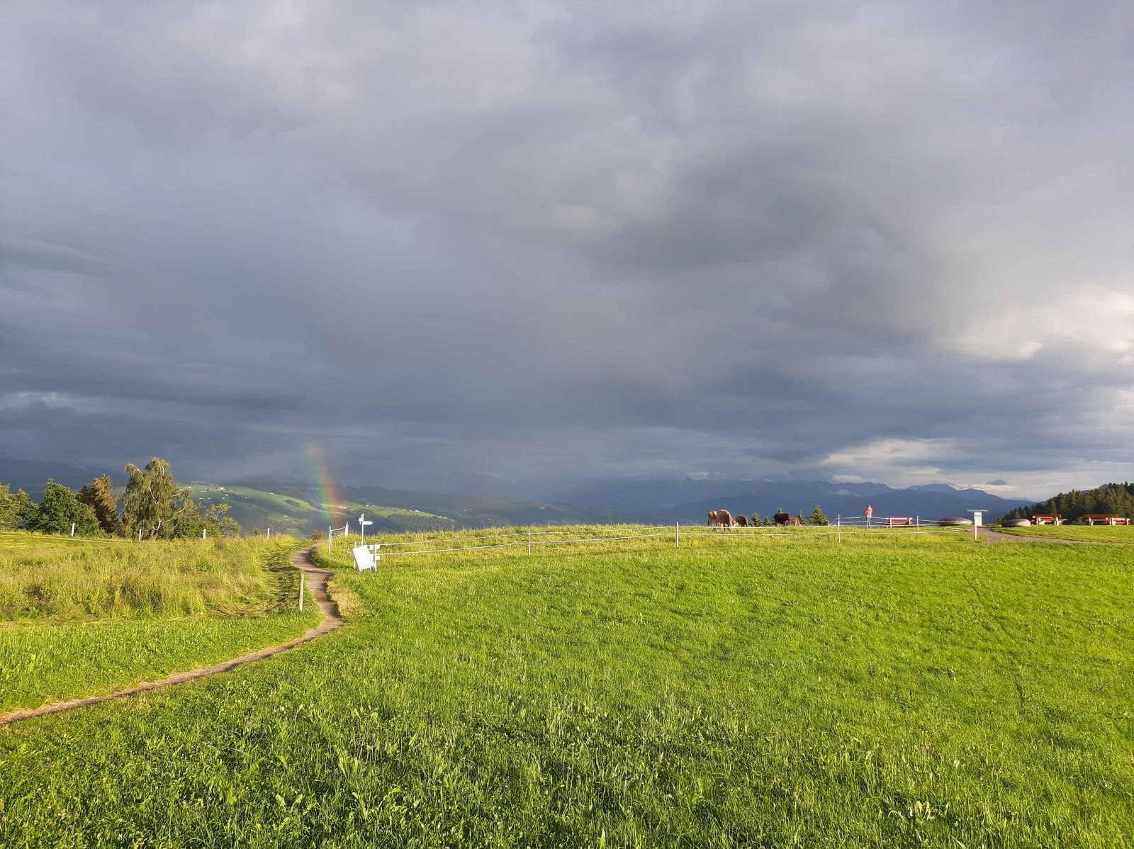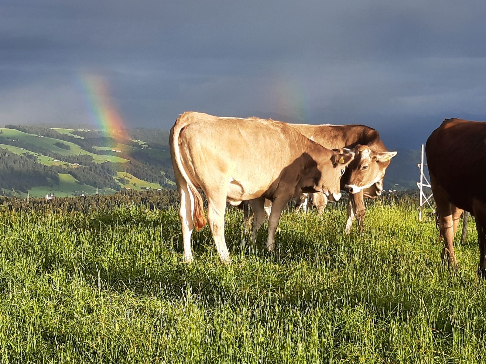 So bewandere ich zunächst einsam den Höhenweg, der mir zur Begrüßung ein Idyll kuschelnder Regenbogenkühe beschert, und igle mich in meinem Zimmer ein. Und während die anderen Reha-Damen in ihrer Freizeit Oberschnaufen, Schwangen, Schmeersburg und das Tante-Emma-Café am Golfplatz unsicher machen, poliere ich meine leicht verwahrlosten Fußnägel auf magenta-metallic Hochglanz und verschlinge ein Schund-, Apotheken- und Veranstaltungsblatt nach dem anderen. Diesen entnehme ich beispielsweise, dass die Queen bei ihrem Thronjubiläum als ihr jugendliches Hologramm in die analoge goldene Kutsche projiziert wurde, was der Körper ab 50 wirklich braucht, dass innerhalb der Gemarkung Schneckeck landwirtschaftliche Flächen zur Nutzung ausgeschrieben sind, es noch freie Plätze für die Busfahrt nach Dresden gibt, wer die neue deutsche Hutkönigin ist und wo es jeden Donnerstag eine Kässpatzengaudi gibt. Als dann das Labor grünes Licht gibt, kann ich gut lackiert und topinformiert in den Klinikalltag starten.