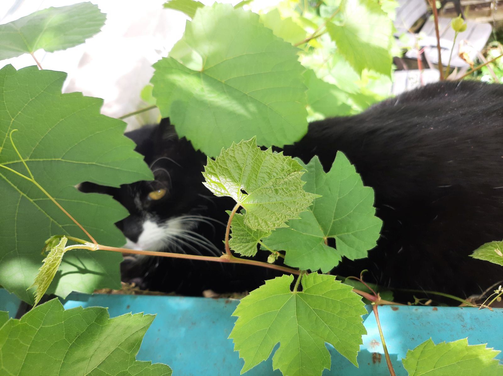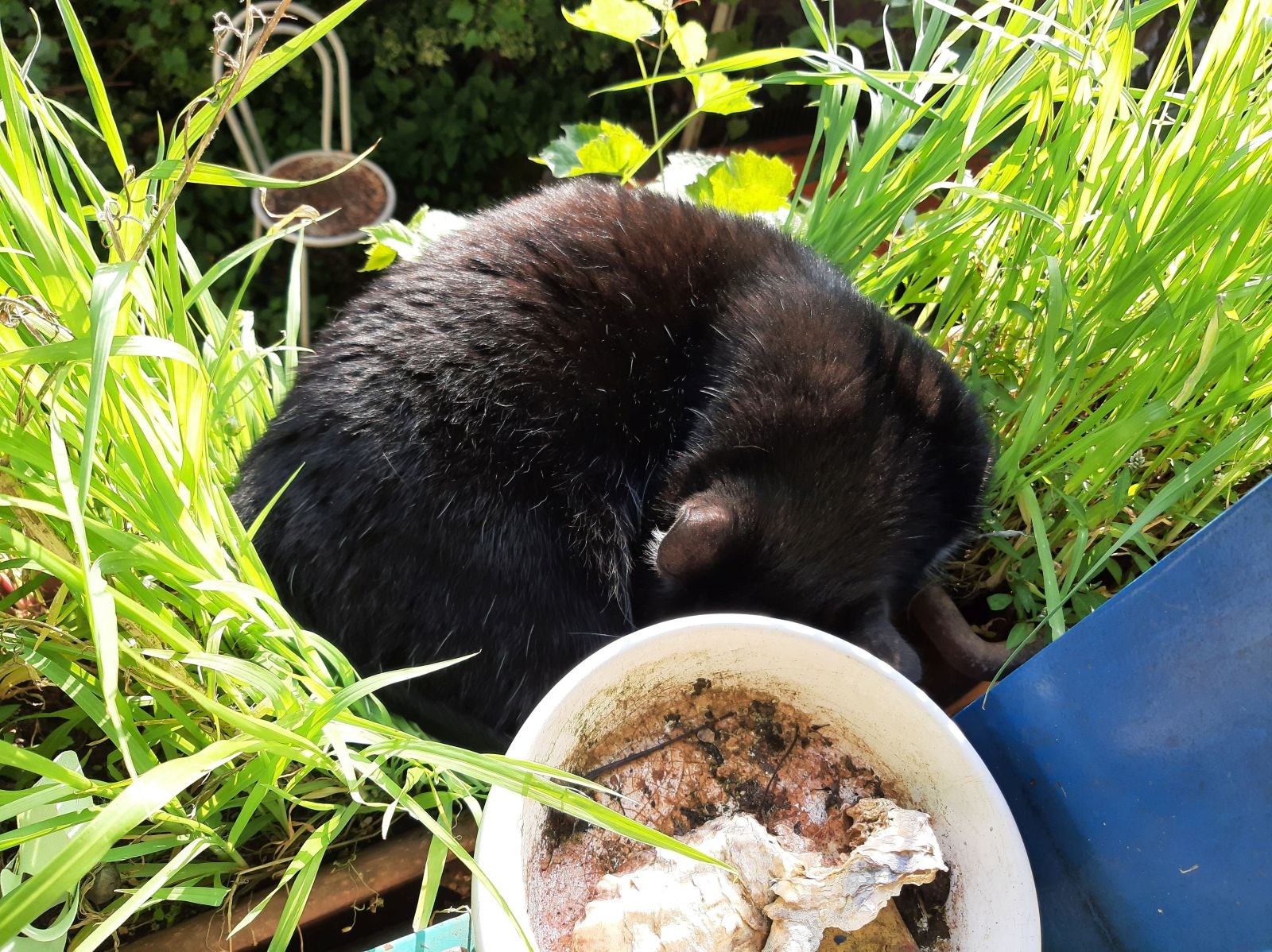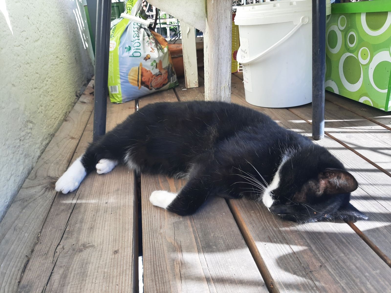 Nachdem ich mich insgesamt hinreichend aufgeregt habe, füge ich mich in das Unvermeidliche und mache – mal wieder – die Stoizismus-Nummer, es hilft ja nichts. Zum Glück ist gutes Wetter, und so ziehe ich mit Sack und Pack, Katzen, Kaffee und Zeitung auf unseren weinumrankten Balkon und richte mich für die kommenden Tage häuslich ein. Aus Gymnastikmatte, Decken und Kissen bereite ich mir ein Lager, löse 1001 Kreuzworträtsel, lese uralte Zeitungsartikel und schreibe brandneue Blogartikel. Durch die Gitterstäbe meines Balkons parliere ich mit den Nachbarinnen, sehe den Mauersegler*innen zu, wie sie kreischend durch die Häuserschluchten schießen, lausche ergriffen dem Hummelgebrummel in den Rosen sowie dem Abendgesang der Amsel auf Schnattarinas Haus gegenüber und chille mit den Katzen meine Base. Letztere lungern hocherfreut 24/7 mit mir herum, wahrscheinlich denken sie, dass ihr Mensch es nun endlich begriffen hat.
