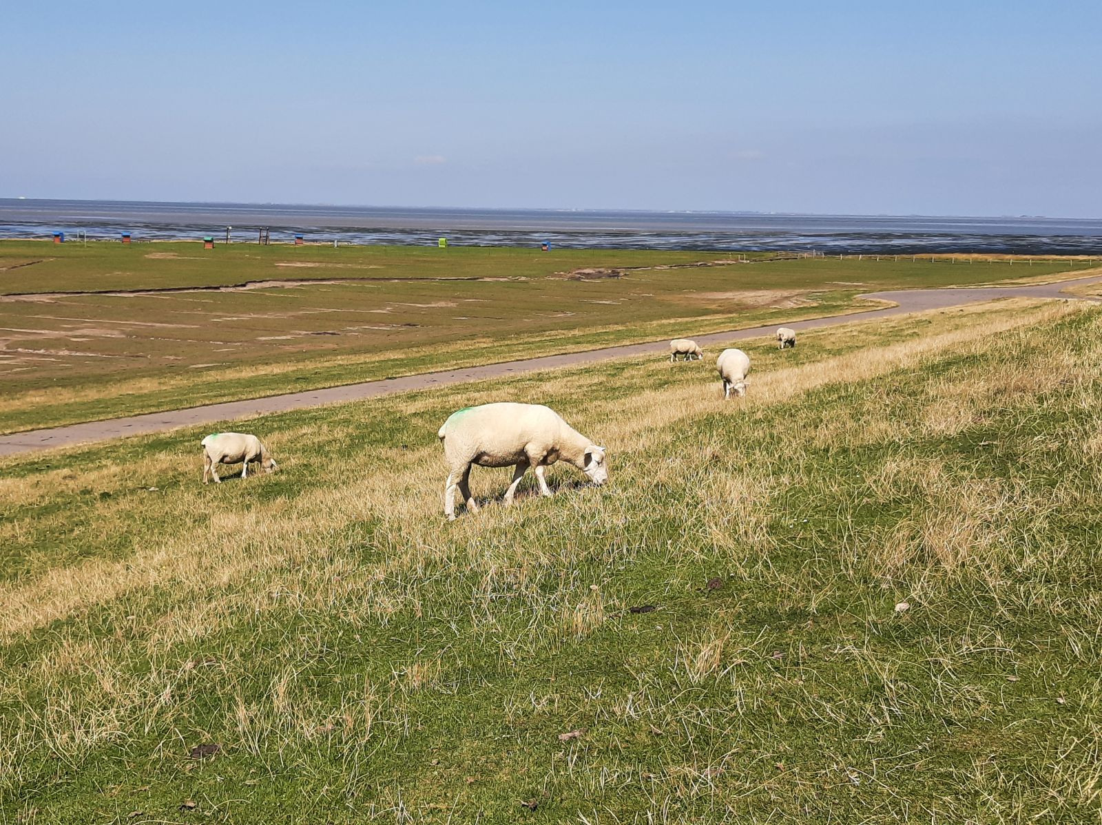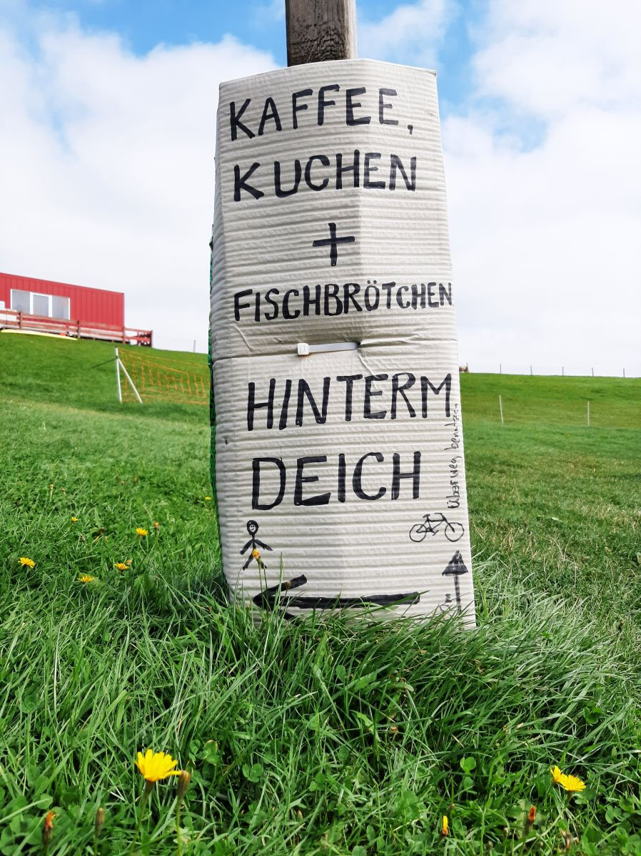 Am dritten Tag miete ich mir in Schnarching beim Schneiderschnecker Fahrradengel ein Rad für die kommenden Touren auf der Halbinsel. Der Fahrradengel ist ein wortkarger Friese um die Fünfzig, der nur am Ende unseres Deals kurz auftaut: „Wenn de liegenbleibst, rufste an. Dann schlepp ich dich ab.“ Ein Mundwinkel zuckt dabei leicht nach rechts, vermutlich ein friesisches Grinsen. Mit meinem quietschgelben Mietrad radle ich nun durch die Ortschaften mit den klangvollen Namen sowie weitere Schafherden, Deiche hoch, Deiche runter, versenke mein Beleidigtsein mit dem Leben endgültig in der Nordsee, esse Fischbrötchen und Kuchen, fotografiere Schafe, Kühe, Leuchttürme sowie entzückende Friesenhäuschen, schicke die Bilder in unsere Familiengruppe und muss mir eingestehen, dass ich sowohl die Brut als auch Chéri schmerzlich vermisse. So beseelt ich von meiner luxuriösen Auszeit bin, so sehr fehlt es mir, diese großartigen Eindrücke und das Glück mit meinen Herzallerliebsten zu teilen. Ich hätte mit vielem gerechnet, doch damit nicht.