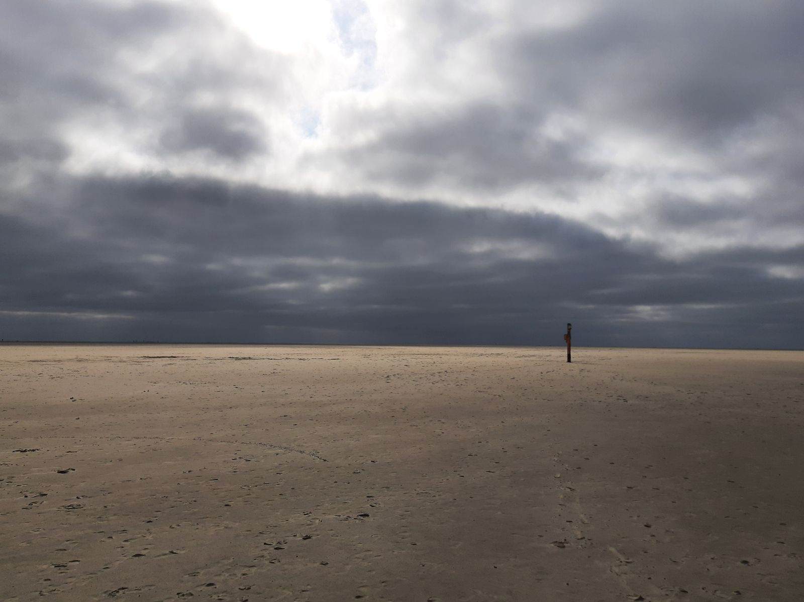 Angekommen auf Schneiderschneck, breite ich mich hemmungslos in meinem Appartement aus, inhaliere inbrünstig Seeluft, feiere die himmlische Stille und schmiede hedonistische Pläne für die kommende Woche im Paradies. Die hiesigen Ortschaften tragen klangvolle Namen wie Krempel, Welt, Witzwort, Schimmelhörn, Poppenbüll oder Kotzenbüll und warten mit entzückenden kleinen Sehenswürdigkeiten auf, sie alle wollen bereist und gesehen werden. Und so starte ich am nächsten Tag euphorisch durch, fahre zunächst an den unendlich weiten Strand mit seinen herrlich weißen Dünen, bummle durch das Städtchen, futtere Fish & Chips sowie Waffeln mit Eis, Zwetschgen und Sahne und schicke Bilder in unsere Familiengruppe. Am zweiten Tag besuche ich die kleine Insel Schnellwurm, auf der unzählige Schafherden auf den Deichen grasen, blöken, hoppeln, liegen, herumstehen und undurchsichtige Pläne schmieden. Mit einem gemieteten Fahrrad radle ich mitten durch die Herden und umrunde so die gesamte Insel, fotografiere und filme Schafe, die auf Menschen starren, esse Fisch und Kuchen, denke, dass ich den schönsten Ort der Welt gefunden habe – und schicke Bilder in unsere Familiengruppe.